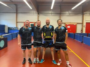 Très bonne première journée de championnat. Nous avons mené tout le long avec une perf d’Antoine dès le premier match. Cela a bouster tout le groupe. Célian pour une première chez les seniors a fait forte impression. Il fait 2,5 et aurait même plus faire le plein avec un peu plus de chance.Sinon tout le monde a ramené des points sauf notre ami Christian(hormis le double avec Célian)mais il en a fait gagner par son coaching avec Célian et Antoine dans des moments difficiles. Grand merci à lui.