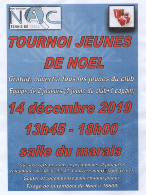 Le club organise son premier tournoi des jeunes samedi 14 décembre. Le principe est simple, chaque licencié jeune peut participer en étant accompagné par un jeune non licencié en tennis de table.